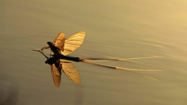 Először a hím szubimágók jelennek meg, amelyek a partra repülnek, ahol vedléssel alakulnak párzóképes imágókká. A vedlés folyamata során az állat röpképtelen, így teljesen ki van szolgáltatva a rovarevő madaraknak. Az imágóvá átalakult, hosszú fartoldalékkal rendelkező hímek közvetlenül a víz felett repülve keresik a nőstényeket.